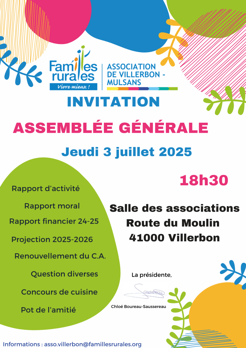 Pour tout renseignement et nous rencontrer, rendez vous le 5 septembre 2025 de 16h à 19h à la salle Annexe de Villerbon - Rue des Touches.