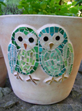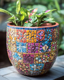 Décoration d’un pot en terre cuite en mosaïque classique pose directe